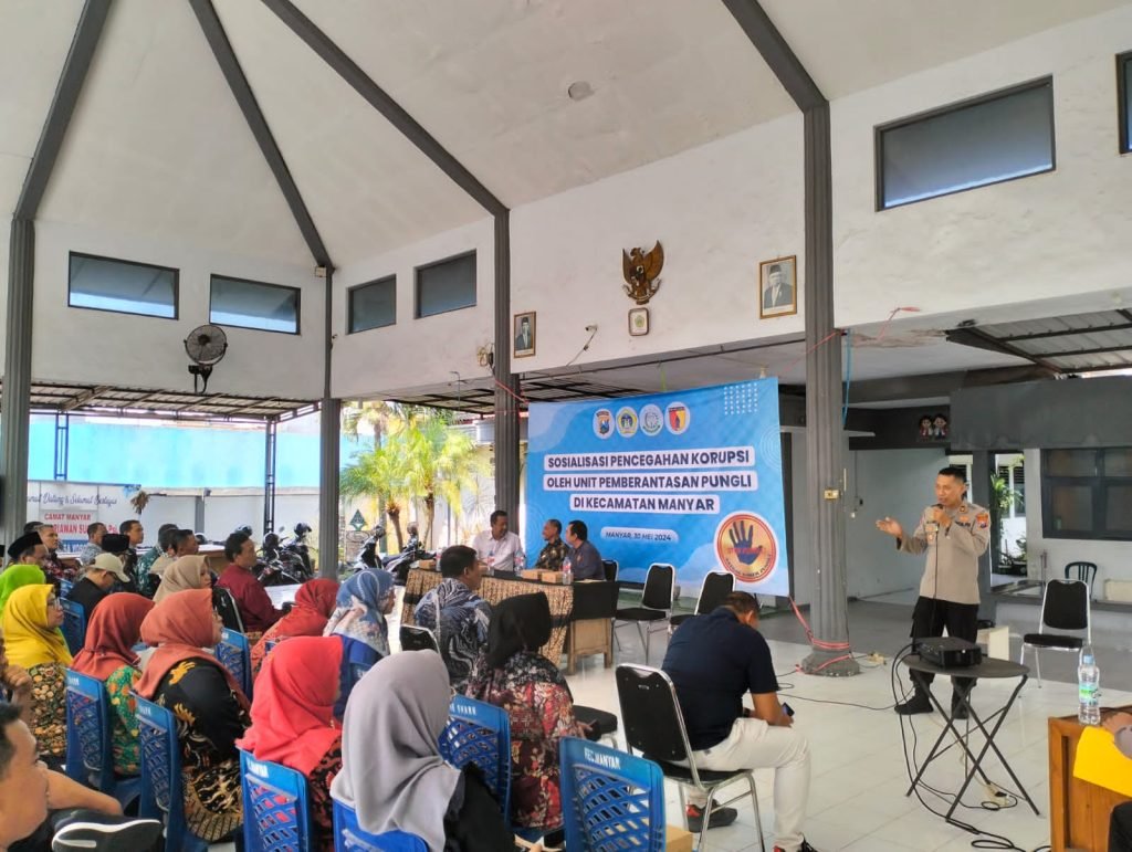 “Sosialisasi Saber Pungli di Kecamatan Manyar bertujuan untuk memberikan pemahaman kepada aparatur pemerintah dan masyarakat tentang pungli dan bagaimana cara mencegahnya. Kegiatan ini diharapkan dapat meningkatkan disiplin aparatur negara dalam memberikan pelayanan publik yang bebas dari pungli dan membangun budaya anti pungli dan korupsi di masyarakat,” bebernya.