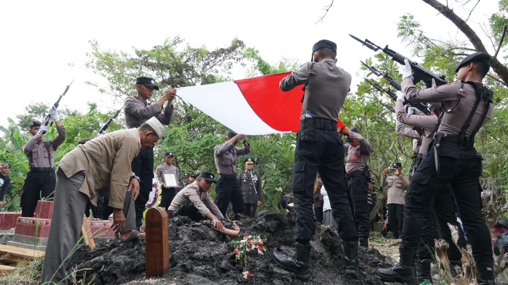 “Upacara pemakaman kedinasan anggota Polres Gresik merupakan bentuk rasa hormat dan penghargaan kepada anggota Polri yang telah mengabdi kepada negara,” terang Kompol Dedik.