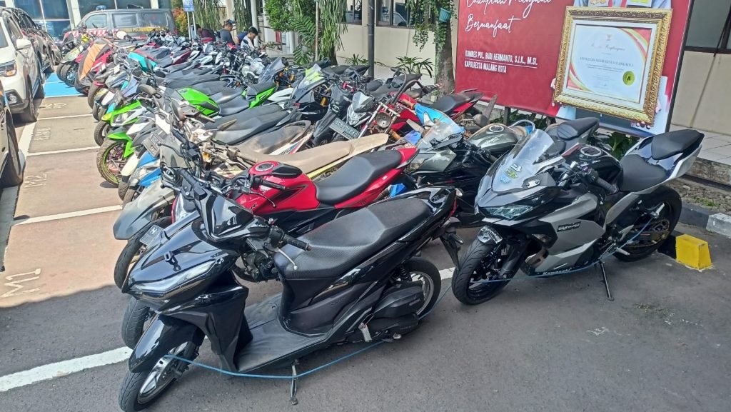 Semua kendaraan roda dua yang melanggar tersebut saat ini diamankan di halaman depan dan belakang Polresta Malang Kota.