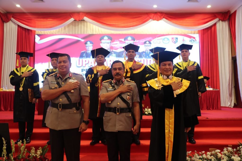 Wakapolri Komjen Pol Agus Andrianto membacakan amanat dari Kapolri Jenderal Listyo Sigit Prabowo. Sebelum membacakan pesan dari Kapolri, Agus mengingatkan para wisudawan untuk menjaga kehormatan institusi dan menjadi agen perubahan dalam pelayanan untuk masyarakat.