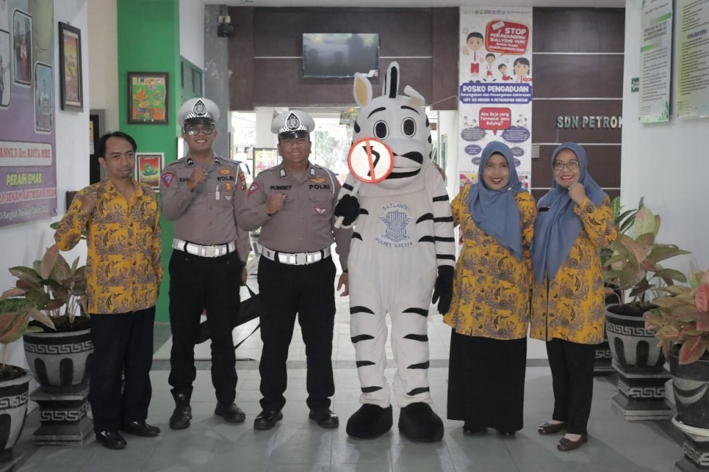 Ipda Andreas, Kanit Kamsel Sat Lantas Polres Gresik, menyampaikan materi dengan tema “Keselamatan Berlalu Lintas” kepada para siswa SDN Petrokimia Gresik. Ia berharap para siswa dapat menjadi pelopor keselamatan di jalan raya dan disiplin dalam berlalu lintas.