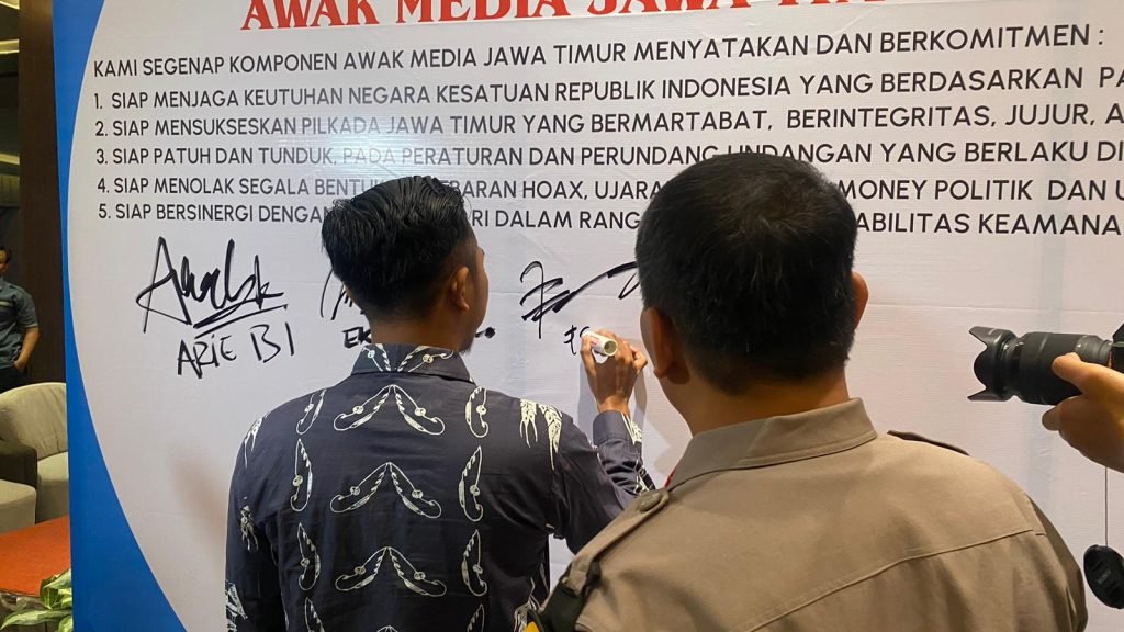 kami dari jajaran kepolisian berharap bahwa rekan-rekan media jawa timur ini bisa betul-betul konsentrasi terhadap pemerintahan bahwa diharapkan pemberitaan ini akurat seimbang dan dapat dipertanggung jawabkan serta sesuai dengan undang-undang pers dan kode etik jurnalistik yang mana dapat menyajikan informasi yang menjernihkan meyejukkan.