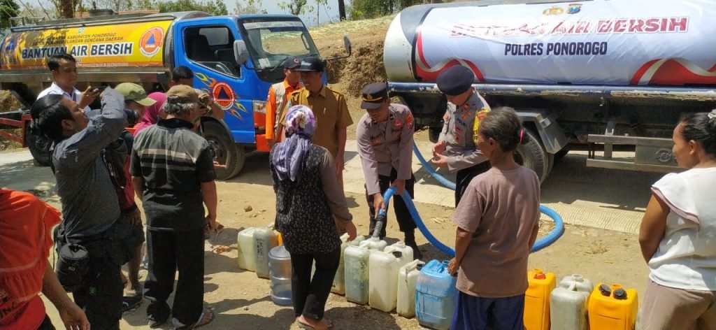 Kapolres Ponorogo, AKBP Anton Prasetyo mengatakan telah melakukan droping air bersih sebanyak 2 truk tangki yang masing – masing berisi 5.000 liter.