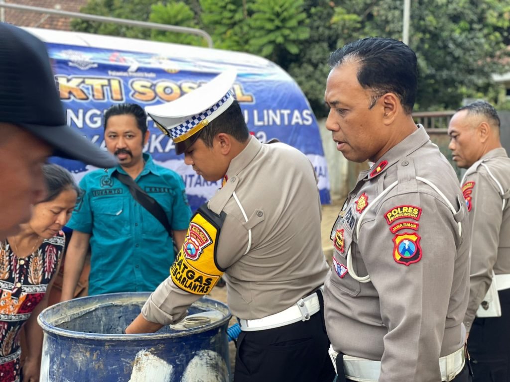 “Hari ini dalam rangka Harlantas ke-69, Satlantas Polres Probolinggo melaksanakan bakti sosial pendistribusian air bersih di desa yang saat ini kekurangan air bersih,” kata AKP Antonio, Minggu (15/9).