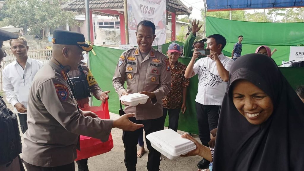 Dirbinmas Polda Jatim Kombes Pol Asep I. Rosadi, M.P.A. membagikan nasi kotak gratis kepada para masyarakat yang sudah menggunakan hak pilih mencoblos di TPS.