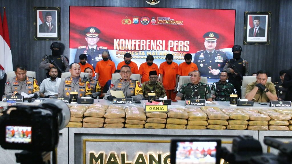 “Hasil pengembangan kasus mengarahkan petugas kepada pengiriman ganja melalui jasa ekspedisi di Jl. Hamid Rusdi, Kota Malang,” ungkap Kombes Pol Nanang.