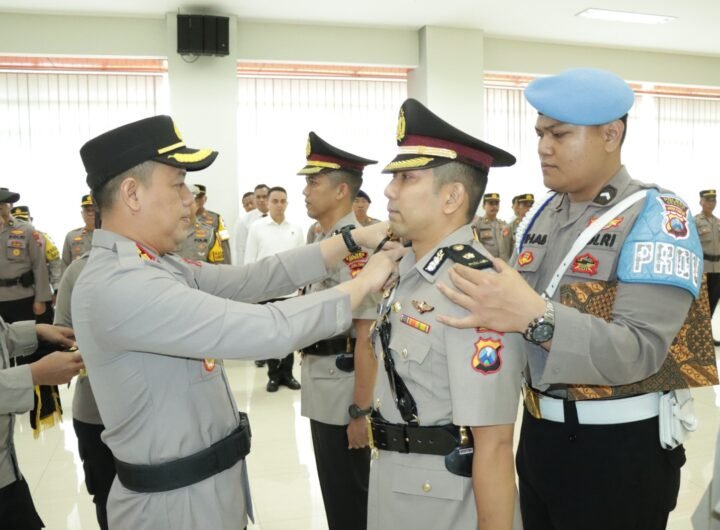 GRESIK – Kapolres Gresik AKBP Adhitya Panji Anom memimpin serah terima jabatan (sertijab) Wakapolres Gresik dan Kabag...
