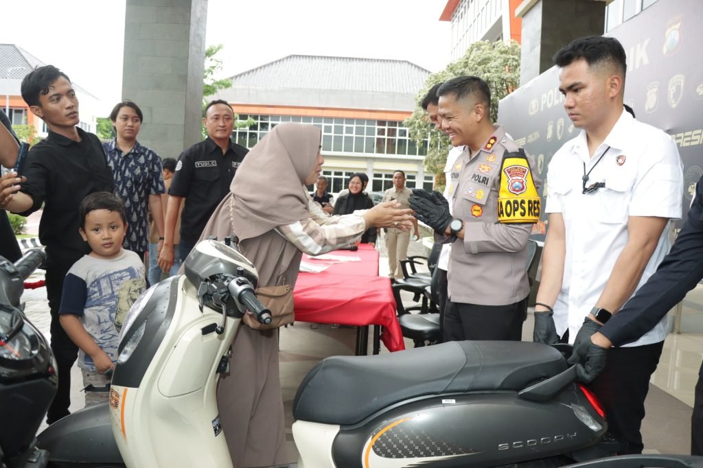 GRESIK – Kegembiraan tak terbendung terlihat dari wajah Ibu Eva saat motornya yang sempat dicuri berhasil dikembalikan oleh pihak kepolisian. Eva yang merupakan ibu rumah tangga ditemani anaknya, sambil menangis, mengucapkan syukur atas kembalinya kendaraan yang menjadi sarana transportasi utama keluarganya.