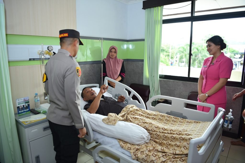 Setibanya di rumah sakit, Kapolres Gresik langsung menemui Aiptu Setyo Budi untuk memberikan dukungan dan semangat agar segera pulih.