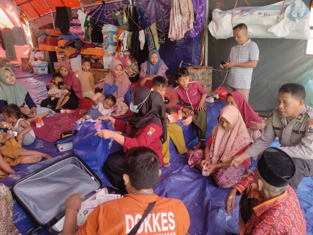 Dengan menyalurkan bantuan kemanusiaan, Polres Pamekasan Polda Jatim memberikan bantuan obat-obatan kepada para pengungsi.